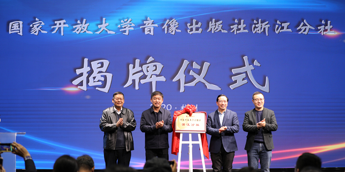 11月27日,国家开放大学音像出版社浙江分社揭牌仪式在浙江开放大学举行。国家开放大学副校长林宇、浙江开放大学副校长郑友取、国家开放大学教务部部长叶志宏、国家开放大学出版传媒集团总经理匡贵秋、国家开放大学理工教学部部长袁薇等出席揭牌仪式。仪式由国家开放大学出版传媒集团副总经理张暾主持。