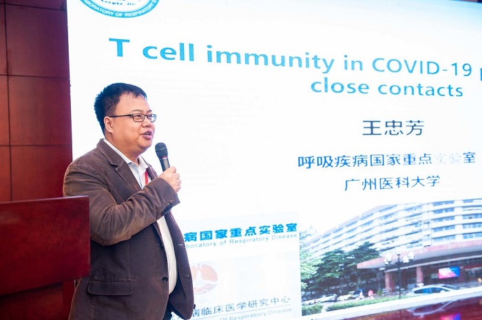 王忠芳教授作《新冠病毒记忆性T细胞免疫形成机制研究》的报告