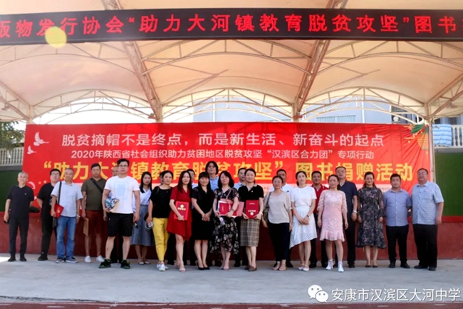 2020年6月30日,陕西师范大学出版总社作为陕西省出版物发行协会会员单位,积极参与了由陕西省民政厅部署,陕西省发协承办的“助力大河镇教育脱贫攻坚”图书捐赠活动,为陕西省安康市汉滨区大河镇中小学校、幼儿园、职工书屋捐赠图书2020册,码洋4.5万元。汉滨区大河镇人民政府在捐赠活动上给陕西师范大学出版总社颁发了荣誉证书。