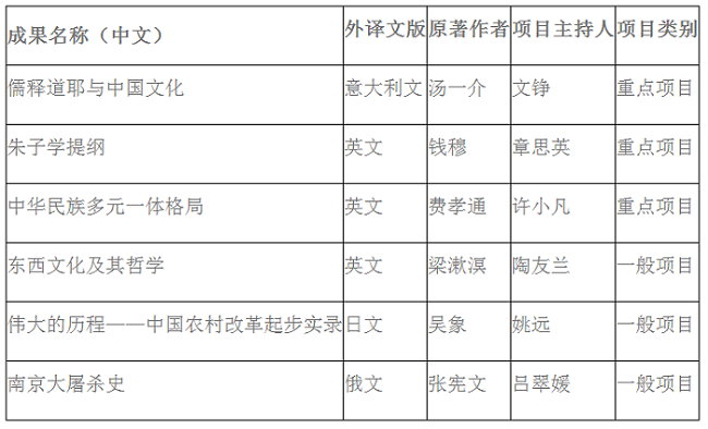 中华学术外译项目是国家社科基金项目的主要类别之一,主要资助代表中国学术水准、体现中华文化精髓、反映中国学术前沿的学术精品以外文形式在国外权威出版机构出版并进入国外主流发行传播渠道,旨在深化中外学术交流与对话,增进世界了解中国和中国学术,增强中国学术国际影响力和国际话语权,不断提升国家文化软实力。
