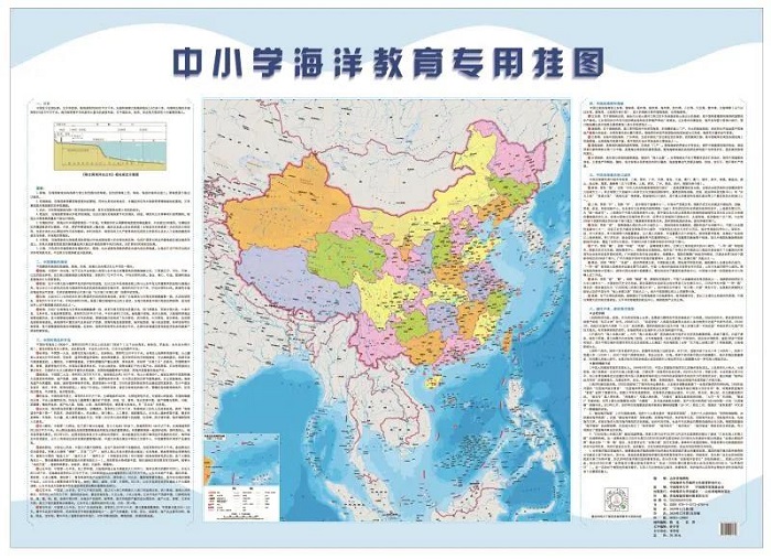 为加强对青少年的海洋教育,普及海洋科学知识,提升中小学生海洋意识,全国第一张《中小学海洋教育专用挂图》日前已由中国海洋大学出版社和山东省地图出版社联合出版,即日起在全国新华书店发行。