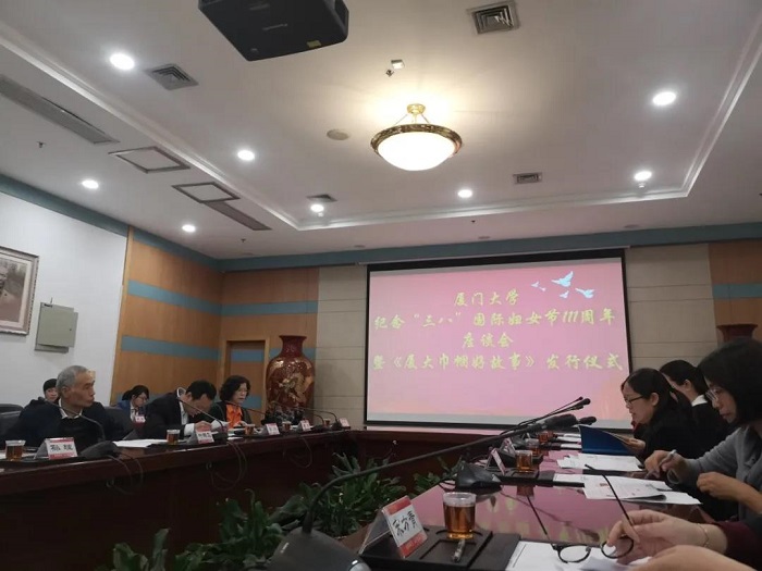 2021年3月5日下午,厦门大学纪念“三八”国际妇女节111周年座谈会暨《厦大巾帼好故事》发行仪式在厦门大学颂恩楼会议室举行。厦门大学党委书记张彦,厦门大学党委副书记、宣传部部长、教师工作部部长徐进功,厦门大学党委常委、组织部部长、统战部部长孙理,以及厦门大学办公室、组织部、宣传部、教师工作部、学生处、人事处、研究生院、教务处、科技处、社科处、财务处、资产处、校工会、校团委、校妇委会等单位相关负责人,师生代表参加了活动。会议由厦门大学副校长、工会主席邓朝晖主持。