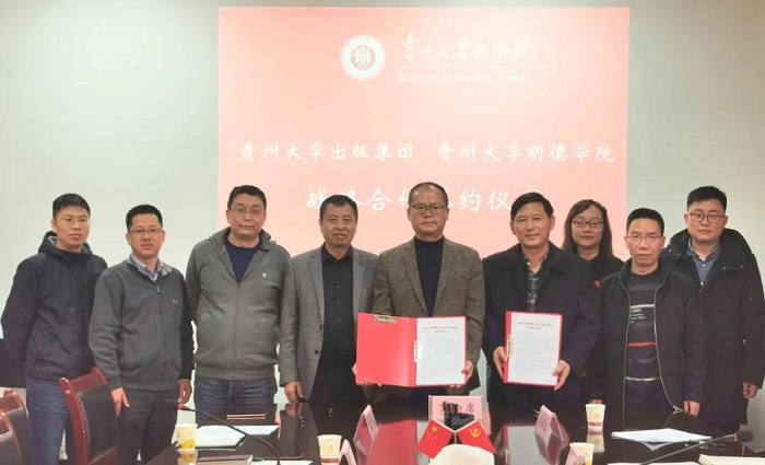 3月22日下午,贵州大学出版集团与贵州大学明德学院战略合作签约仪式在贵州大学举行。