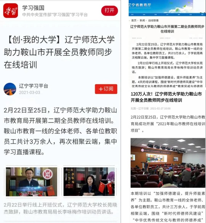 学习强国平台、中国教育新闻网、辽宁日报、辽宁省教育厅官网等多家媒体对本次系列培训做了专题报道。