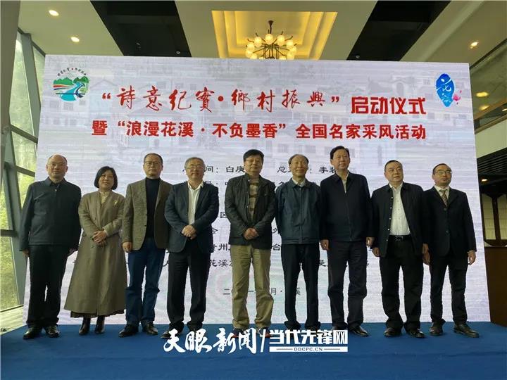 3月27日,“诗意纪实·乡村振兴”之“浪漫花溪·不负墨香”采风活动启动仪式在贵阳市花溪区高坡乡扰绕村露营基地举行。著名文化学者、全国政协常委、中国作协副主席、中国纪实文学研究会会长、“诗意纪实·乡村振兴”总顾问白庚胜,著名诗人、中国作协诗歌委员会主任、“诗意纪实·乡村振兴”总指导叶延滨,著名诗人、首届鲁迅文学奖获得者、“诗意纪实·乡村振兴”总指导王久辛等省外名家学者;著名文化学者、中国作协会员、贵州绿色发展战略首席专家、“诗意纪实·乡村振兴”总策划李裴,贵州省出版集团原总经理、贵州省社科联原一级巡视员宋健,著名文化学者、贵州省对外交流协会会长、“诗意纪实·乡村振兴”执行策划何京,著名文化学者、贵州大学出版社社长闵军等省内名家学者;花溪区委宣传部、花溪区直机关工委、花溪区旅管委、花溪区文旅局、高坡乡党委、高坡乡人民政府、花溪区旅文公司等相关部门主要负责人,以及省内诗人、朗诵家和媒体人员参加启动仪式。