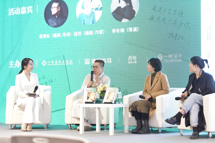 本网讯 2021年4月1日下午15时,《爱情电影圣经》新书分享会在北京书展主会场如约举行。此次活动由江西高校出版社、盛世肯特、青年电影手册、一树设计联合主办。《爱情电影圣经》主编程青松携手编剧、作家程然,导演李冬梅,与现场观众一起分享与爱情电影相关的理解与感悟。