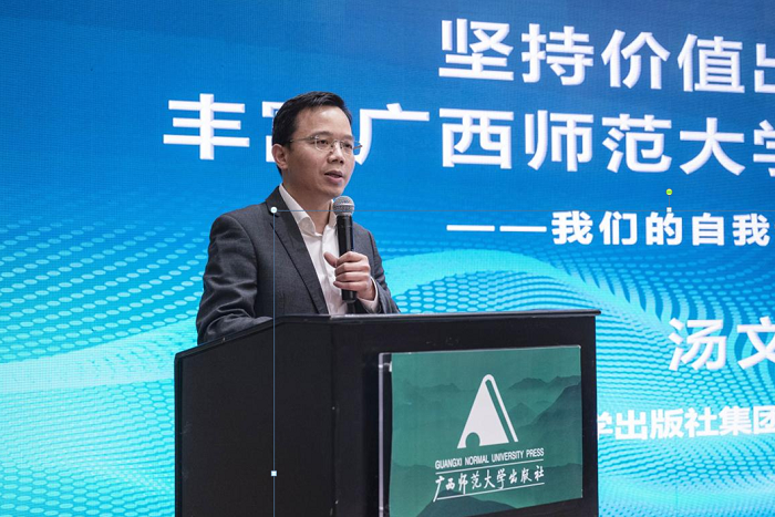 广西师范大学出版社集团党委副书记、总编辑汤文辉作主题报告