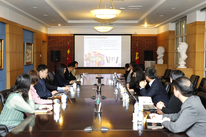 当天下午,双方在外研社举行会议,对未来的合作规划进行了深入交流探讨。外研集团党委书记、董事长,外研社社长王芳,外研社副社长王勇,外研社北京外研通教育科技有限公司总经理杨岚,外研社品牌管理部主任李鸿飞,华为消费者BG业务发展部部长龚元松,华为消费者业务AI与智慧全场景教育生态产品域总监王永德,华为消费者BG鸿蒙服务生态部部长张守杰,华为消费者BG鸿蒙教育畅学桌面大产品域总监裴斐月等出席了会议。