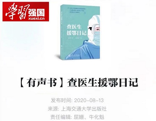 4月11日,国家新闻出版署组织的“读掌上精品 庆百年华诞——百佳数字出版精品项目献礼建党百年专栏”上线启动。中央重点新闻网站、重点数字阅读平台、新媒体网站等19家网络平台参与设立专栏,集中上线100个数字出版精品项目,即日起向社会免费开放100天。上海交通大学出版社《查医生援鄂日记》(订购)有声书位列精品项目之一。