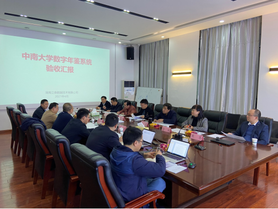 4月8日上午,中南大学出版社“数字年鉴出版平台建设”项目验收会在中南大学铁道校区电子楼206会议室召开。湖南省教科院基教所所长刘建琼、湖南省地方志编纂院年鉴工作部主任张征远、中南大学大数据研究院院长龙军、湖南省自然资源厅年鉴编辑部主任罗健、湖南省统计局综合室副主任徐林、中南大学校办副主任雷先阳、湖南农业大学党政办副主任朱骞作为项目验收专家参加会议,参加会议的还有中南大学出版社社长吴湘华、副社长郑杰,出版社数字出版中心、出版社发行营销部和湖南立森数据技术有限公司相关工作人员。会议由中南大学出版社社长吴湘华主持,刘建琼所长担任验收专家组组长。