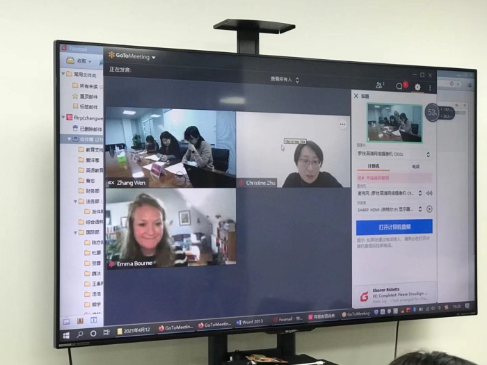 外研在线数字科技有限公司副总裁屈凌云、外研社国际合作部副主任张稳一同参加了视频会议。