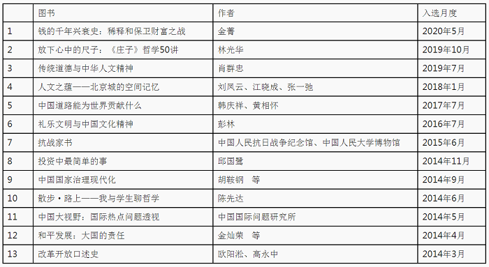 自“中国好书”月榜设立以来,中国人民大学出版社已有十余部图书入选。入选图书如下: