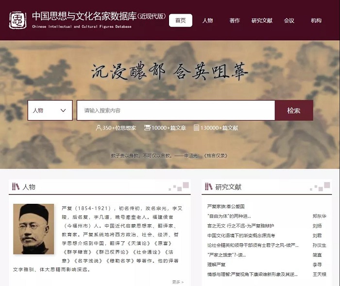 访问中国思想与文化名家数据库www.cnthinkers.com 服务载体:PC端浏览器