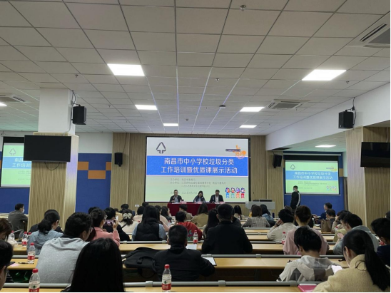 4月27日,由南昌市教育局主办,江西高校出版社基础教育分社、南昌市教育科学研究所协办的南昌市中小学校垃圾分类工作培训暨优质课展示活动在南昌航空大学(老校区)成功举办。南昌大学资源环境与化工学院院长吴代赦、华东师范大学附属小学垃圾分类教育负责人朱健、厦门海沧延奎实验小学校长易增加受邀授课。南昌市教育局副局长付青岚,南昌市教育局义务教育工作科副科长张景华,江西高校出版社副社长吴子明、基础教育分社社长黄长根,以及诸多知名专家、环境教育骨干教师等共计百余人参会。
