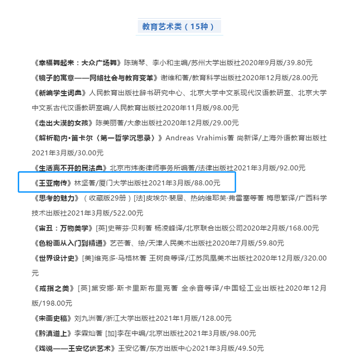 由中国出版传媒商报社策划与发起的第八届读友读品节推荐读品新鲜出炉,厦门大学出版社《王亚南传》(订购)入选100种好书推荐。