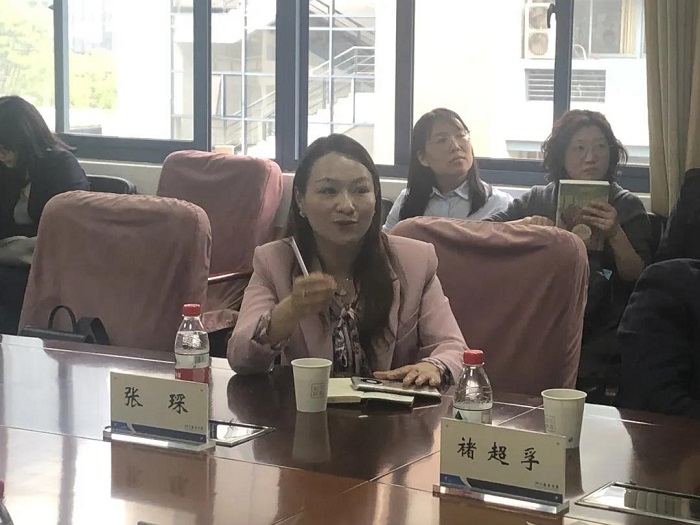 张琛副总编辑向浙大城市学院外国语学院的老师们介绍了浙江大学出版社的发展历程、组织架构、产品荣誉、国家级出版项目和国际出版情况,以及国际文化出版中心发展沿革、产品线、产品结构、部门品牌等情况。同时,张琛副总编辑针对老师们关心的学科发展、教材建设、项目申报等事宜做出了详细介绍,为老师们提供了有益建议,并探讨了双方进行深度合作的可能性,以及后续的相关合作事宜。