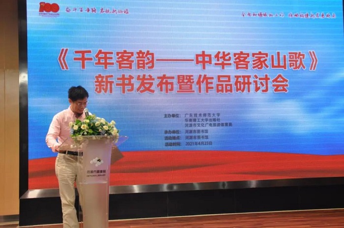 2021年4月23日——世界读书日,华南理工大学出版社出版的《千年客韵——中华客家山歌》(订购)新书首发式在河源图书馆举行。本次发布会由广东技术师范大学、华南理工大学出版社、河源市文化广电旅游体育局共同主办。中共河源市委常委、宣传部部长朱蔚蔚,广东技术师范大学副校长戴青云,河源市文化广电旅游体育局副局长骆满星,华南理工大学出版社社长兼总编辑卢家明,以及现场嘉宾和数百名观众、多家媒体参加了本次发布会。