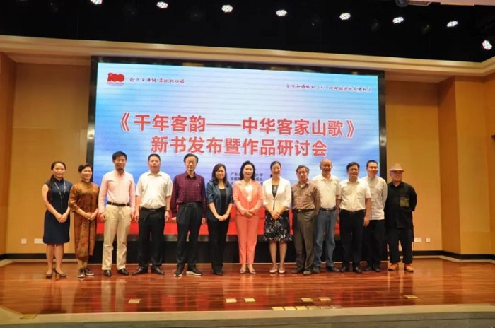 首发式后,举行了一场别开生面的客家山歌研讨会,著名学者谭元亨 、杨宏海、廖小凤、张佑周和陈菊芬就客家山歌展开了研讨。与会的嘉宾都对陈菊芬教授立足学术、扎根基层,保护客家山歌,宣传客家文化的精神给予了高度赞扬。深圳文联原专职副主席杨宏海说,陈菊芬是一个客家山歌的歌者,也是联系与海外客家人交流的使者,更是一个音乐专业的学者,如此做到这“三者”需要付出很多常人所不能的努力和艰辛,是河源最珍贵的人才,所以她特别值得我们去珍惜。华南理工大学客家文化研究所所长、教授谭元亨表示,传统文化的传承要紧跟时代、不断创新,更有生命力和延续性,《千年客韵——中华客家山歌》(订购)可贵的也在于创新,它对客家山歌进校园,促进非遗保护等推广活动也具有一定帮助。龙岩学院闽台客家研究院原院长张佑周教授表示,对客家山歌雅化、山歌进校园,做到雅俗共赏,有利于客家山歌的传承和传播。龙南县文化馆副馆长廖小凤研究员与陈菊芬教授相识多年,在客家山歌传承保护方面惺惺相惜。廖小凤研究员表示,陈菊芬教授的作品、她的成果、她的成功,让大家看到她的情怀、艺德、人品、勤奋、惊人的毅力、她的严谨,看到她的守正创新,深深为陈菊芬骄傲和自豪,也为河源人民自豪。