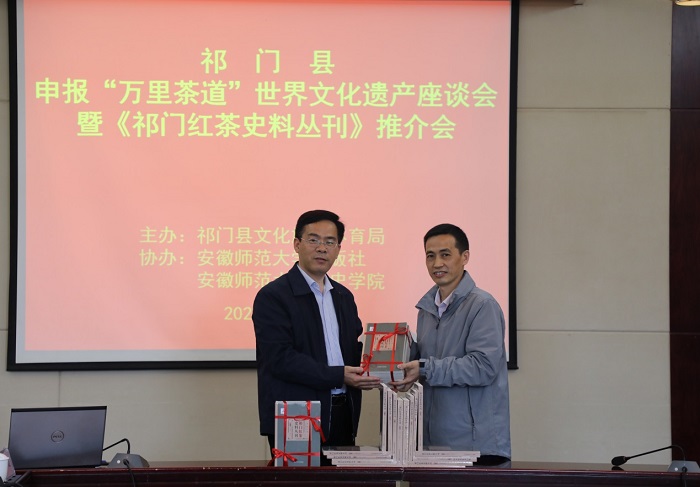 随后,在与会人员的共同见证下,戴兆国向祁门县政府赠送《祁门红茶史料丛刊》精美样书。