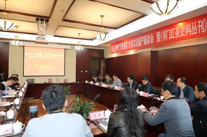 4月22日上午,适逢祁门县开展“万里茶道”世界文化遗产申报之际,出版社联合祁门县政府部门在当地举办国家出版基金资助项目成果《祁门红茶史料丛刊》推介会。祁门县副县长相友高,县文旅体局、产业发展局,黄山市徽商研究会等单位负责人,湖北大学、黄山学院等高校专家,学校出版社总编辑戴兆国及相关部门主任,丛刊主编、历史学院副研究员康健等参加会议。会议由祁门县文旅体局党组书记、局长吴克勤主持。