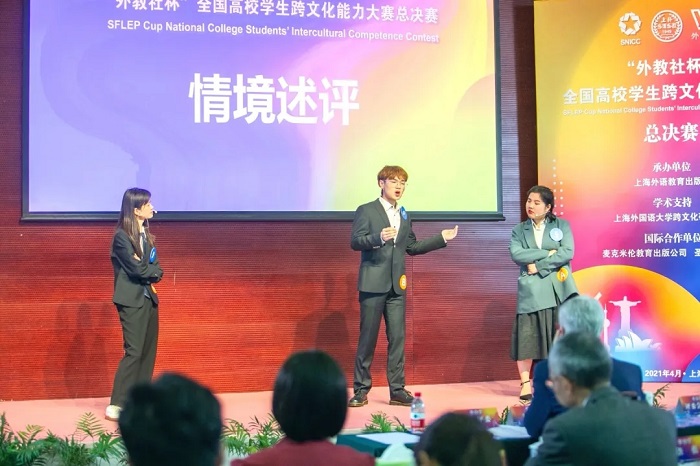 2021年4月25日,历时一天半的“外教社杯”全国高校学生跨文化能力大赛全国总决赛在上海外语教育出版社圆满结束。本次总决赛有来自上海、江苏、浙江、安徽、湖南、北京、陕西、河南、内蒙、甘肃等省市共计23支参赛队伍参加(包含3支留学生团队)。大学生们通过案例分析、快问快答、情景述评、讲述中国故事等环节,展示了他们对于跨文化概念和理论的理解,传播中国声音,促进人文交流。