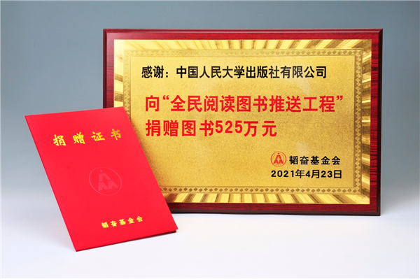 2021年4月21日,由韬奋基金会主办的“全民阅读图书推送工程”4.23图书捐赠仪式在北京市东城区举行。来自中宣部出版局和韬奋基金会的主要领导出席会议,近20家出版单位参会。今年,中国人民大学出版社共向韬奋基金会捐赠码洋525万元的图书,在已捐赠的出版社中排名第二。