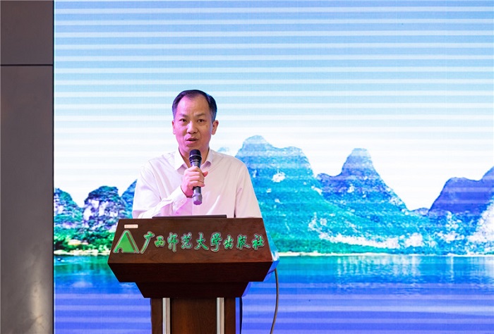 广西师范大学出版社集团公司党委书记、董事长黄轩庄致辞 (黄国生 摄)