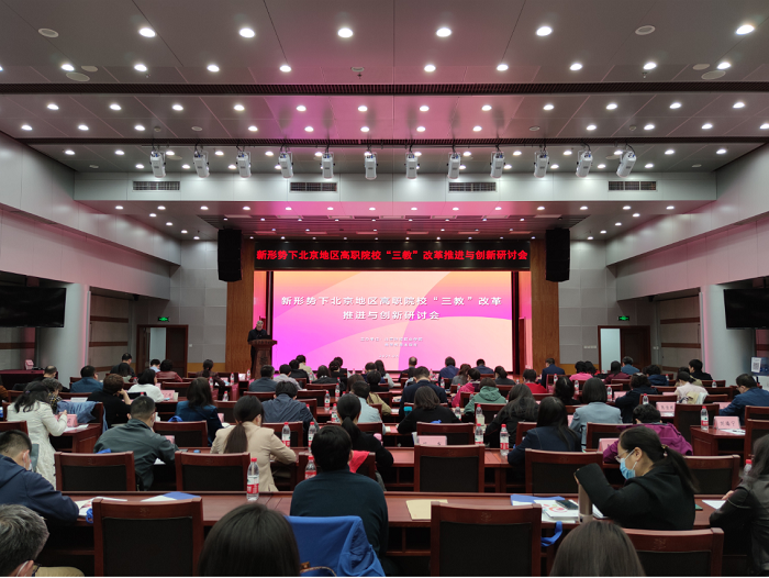 4月22日,新形势下北京地区高职院校“三教”改革推进与创新研讨会在京顺利举办。会议由高教社和北京财贸职业学院联合主办。高教社副社长马景焘、北京市教委职成处处长王东江、教育部职业技术教育中心研究所教学研究室主任刘义国出席会议。