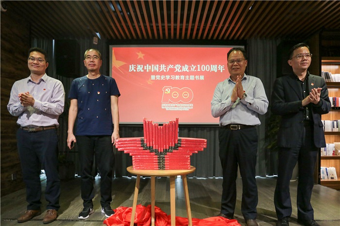 4月23日下午,“庆祝中国共产党成立100周年暨党史学习教育主题书展”启动仪式在广西师范大学出版社集团公司独秀书房·旗舰店举行。集团公司党委书记、董事长黄轩庄,总裁姜革文,党委副书记、总编辑汤文辉,党委副书记、纪委书记蓝廖国共同为“庆祝中国共产党成立100周年暨党史学习教育”主题书展揭幕。