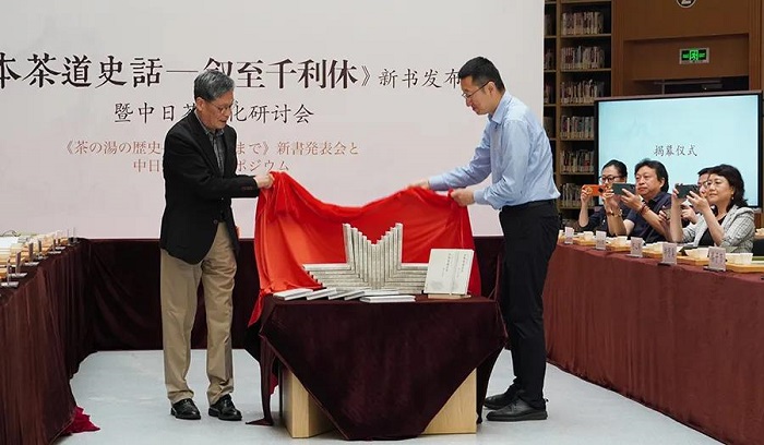 在新书发布环节,上海大学党委常委、总会计师苟燕楠教授与《日本茶道史话——叙至千利休》译者陆留弟教授共同为新书揭幕。
