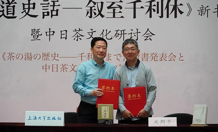 活动现场还举行了上海大学出版社与“上大茶道”系列丛书之《現代語訳南方録》译者、浙江农林大学关剑平教授的签约仪式。