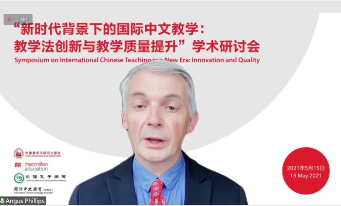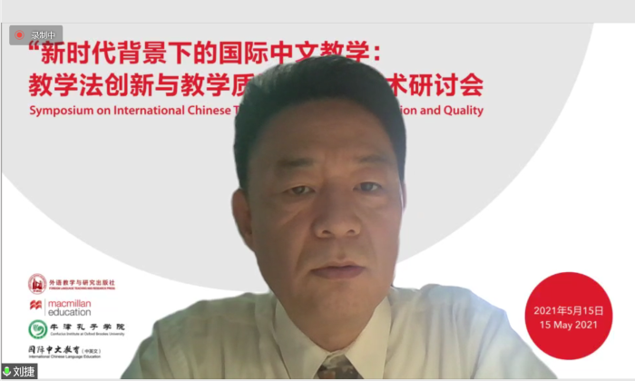 2021年5月15日,由外语教学与研究出版社、麦克米伦教育与牛津布鲁克斯大学孔子学院联合主办,《国际中文教育(中英文)》期刊承办,世界汉语教学学会提供学术支持的“新时代背景下的国际中文教学:教学法创新与教学质量提升”学术研讨会在线上成功举办。来自中国、英国、美国、马来西亚、法国等20多个国家和地区的专家、学者、教师近1500人参与本次研讨会。