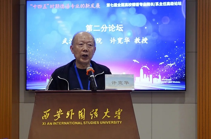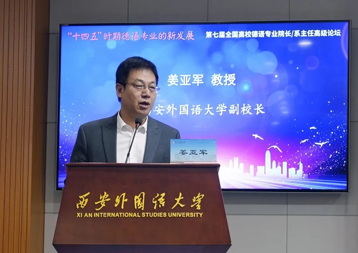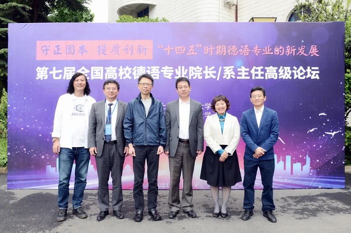 2021年5月14日—16日,由上海外国语大学和西安外国语大学联合主办,上海外语教育出版社承办的“第七届全国高校德语专业院长/系主任高级论坛”在西安举行。来自全国70多所高校的德语专业院长、系主任、学科负责人和西外部分师生等百余位代表参加了本次论坛。论坛以“守正固本、提质创新,‘十四五’时期德语专业的新发展”为主题,就新文科背景下德语专业面临的新任务和新挑战展开了深入的探讨。