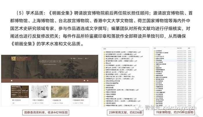 第三,搜罗、组织海内外权威学者加盟编纂团队。比如,美国普林斯顿大学的著名艺术史学者方闻、白谦慎,傅申,北京故宫博物院、上海博物院的专家、很多都成为项目的出版顾问。并争取他们为画家、流派、作品风格及画史价值等攥写、审阅文稿。