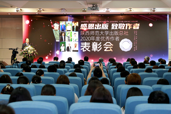 5月22日下午,陕西师范大学出版总社在崇鋈楼学思堂隆重举行“感恩出版•致敬作者”2020年度优秀作者表彰会。突出贡献作者肖云儒,优秀作者潘洵、马瑞映、曾静平、毛志宏、滕衍平、章建跃、沈雪春、夏献平、李惠军等10位陕西师范大学出版总社2020年度优秀作者受到表彰奖励。邓微、张建明、郭建刚、张广斌、曹海英等5位陕西师范大学出版总社2020年度优秀编辑同时受到表彰。