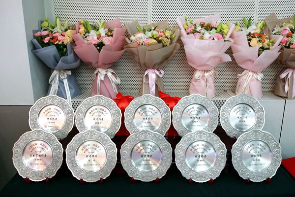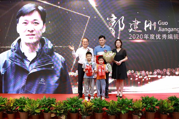 在给优秀编辑颁奖环节,肖云儒、曾静平、沈雪春、夏献平、李惠军为邓微、张建明、郭建刚、张广斌、曹海英颁奖,邓微的丈夫马宏良、郭建刚的儿子郭思宇、张广斌的妻子王华、曹海英的儿子陈启航及陕西师范大学出版总社编辑钱栩分别为他们献花,同时编辑家属也收到赵倩、王雅琨、杨珂、陈可献上的鲜花和礼物。