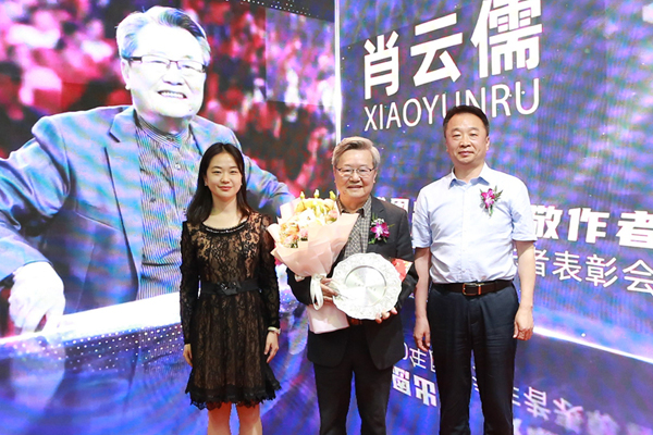 肖云儒上台讲话,称赞陕西师范大学出版总社对出版、对文化的敬畏,称赞陕西师范大学出版总社编辑的敬业、专业,以及对于“云儒文汇”(16种)修订推出付出的心血。他称赞表彰会隆重热烈,形式新颖,领导给作者颁奖,作者和编辑的家人给编辑颁奖,充分体现了出版要出成绩,与主管部门、出版社领导、作者、编辑以及编辑的家人的指导和支持密不可分,缺一不可。他还赠送“出书造福”书法作品给陕西师范大学出版总社,祝愿总社为社会奉献更多思想精深、艺术精湛、制作精良的文化精品。