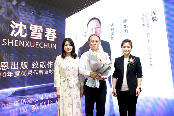 伴随着颁奖视频和掌声,卢胜利为突出贡献作者肖云儒颁奖,梁高全为优秀作者潘洵颁奖(高佳代领),王金秀为马瑞映颁奖,刘东风为曾静平颁奖,李有谋为毛志宏颁奖,魏立安为滕衍平颁奖(编辑代领),屈瑞新为章建跃颁奖(刘玉计代领),杨沁为沈雪春颁奖,田勇为夏献平颁奖,朱晓荣为李惠军颁奖。陕西师范大学出版总社编辑庄婧卿、张潇伊、王文翠、孙瑜鑫、徐文婷、李萱仪、李明、江丹、李佳琪、刘筱等为获奖作者献上鲜花。