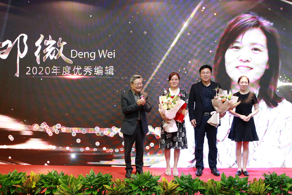 优秀编辑代表邓微、曹海英上台发言,感谢各位作者一路相随,同舟共济;感谢总社搭建平台,助推编辑成长。她们表示今天这份荣誉只属于过去,今后要在政治站位、项目策划、业务技能、产品质量等方面肩负起更大的责任和担当,不忘初心,不辱使命,在这条荣耀的出版道路上继续前行。