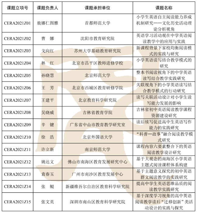 2021年度中国英语教育研究院专项课题立项名单