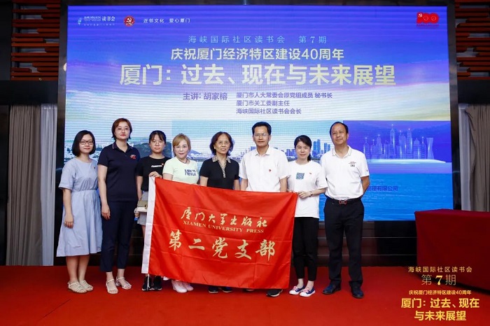 历史是最好的教科书,是党员干部的一门必修课。今年是厦门经济特区建设40周年,也是中国共产党成立100周年。为推动“四史”学习教育真正走进党员心中,5月29日下午,厦门大学出版社第二党支部与前埔东社区党委共建共学,一起走进海峡国际社区参与读书会,同上“改革开放史”思政大课。参加本期读书会的主要嘉宾有厦门大学党委原副书记陈力文、厦门大学教育研究院党委原书记郑冰冰、厦门大学财务处原处长郑鸣、前埔东社区党委书记丁素心等。