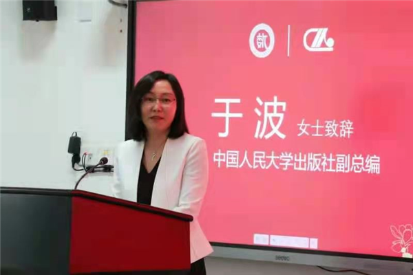 于波副总编辑致辞,对参与本次战略合作协议的代表表示欢迎。她介绍了中国人民大学出版社自1955年建社以来的发展历程,以及取得的囊括所有图书界国家级大奖在内的一系列优秀成绩。于波副总编辑表示,从20世纪80年代人大社就与人大数学教研室建立了良好的合作关系,出版的《经济数学》教材累计销量上千万册,2019年人大社与数学学院共同举办的“金融数学与金融科技国际论坛”也取得了圆满的成功。她表示,此次双方签订战略合作协议标志着出版社和数学学院全方位、深层次合作的开始,标志双方合作进入了一个新的阶段。双方将在学校的支持下,在图书出版、论坛、学术会议等方面展开更加全面的合作,必将结出丰硕成果。