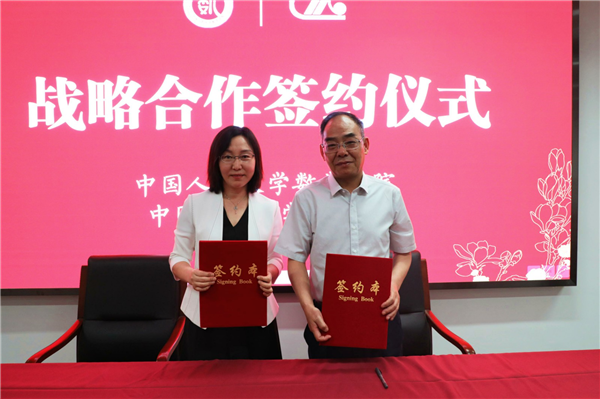 2021年6月1日下午,中国人民大学出版社与中国人民大学数学学院战略合作签约仪式在数学学院二层报告厅举行。出版社副总编辑于波,经济分社社长崔惠玲及相关编辑出席了本次签约仪式,数学学院院长郑志勇、副院长柯媛元、党委副书记黄志勇及数学学院师生代表参会。柯媛元主持签约仪式。