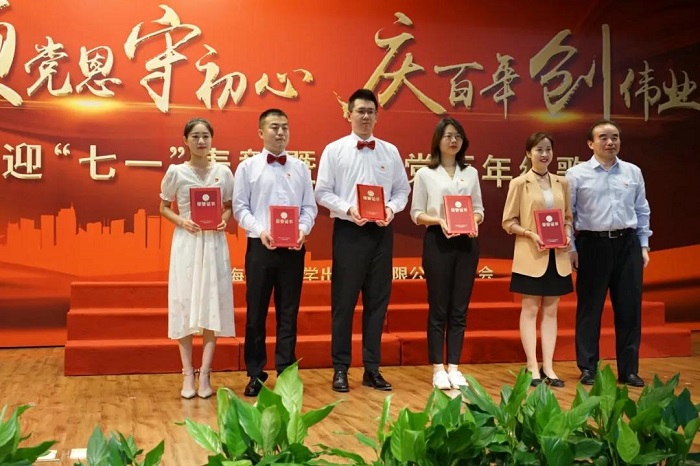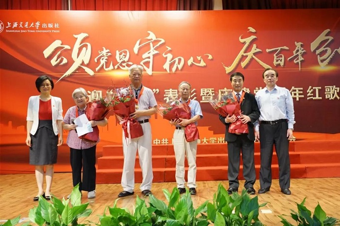 今年是中国共产党成立100周年,党中央决定给党龄达到50周年以上的党员颁发“光荣在党50年”纪念章,上海交通大学出版社共有5位老党员获此殊荣。党委书记钱天东、社长李芳为老党员颁发“光荣在党50年”纪念章,全场掌声雷动。大家深受鼓励,纷纷表示要向老党员们学习,坚定理想信念,持守初心、永远奋斗!