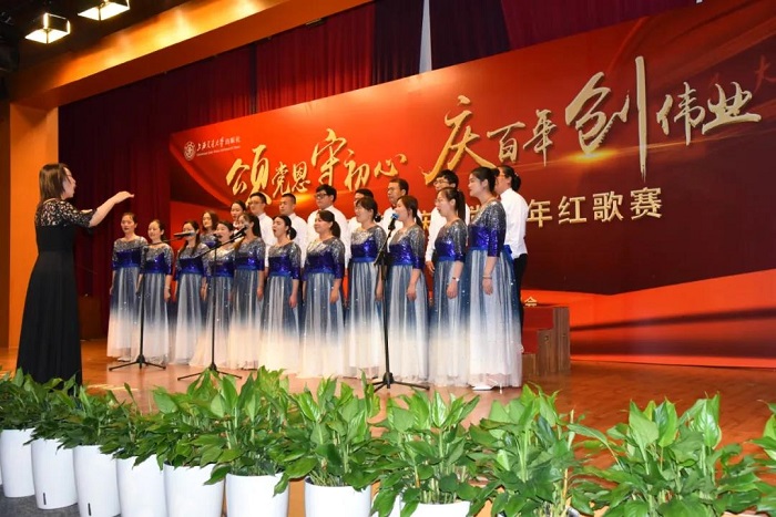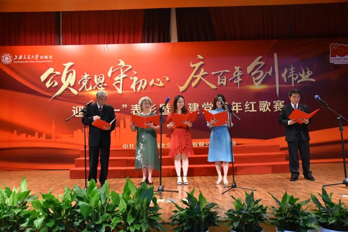 百年大党,风华正茂。6月21日下午,上海交通大学出版社迎“七一”表彰暨庆建党百年红歌赛在徐汇校区包兆龙图书馆三楼演讲厅隆重举行。上海交通大学组织部、宣传部、工会、图书馆、钱学森图书馆等相关部门的领导受邀出席活动并担任评委。上海交通大学出版社党委书记钱天东、社长李芳等社领导、全体党员、全社员工以及部分退休老同志200余人参加,活动由党委副书记、纪委书记周鹏主持。音乐指导王丽华。