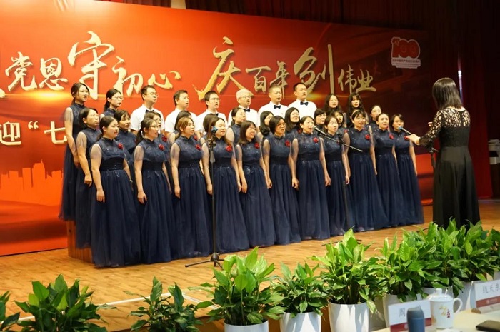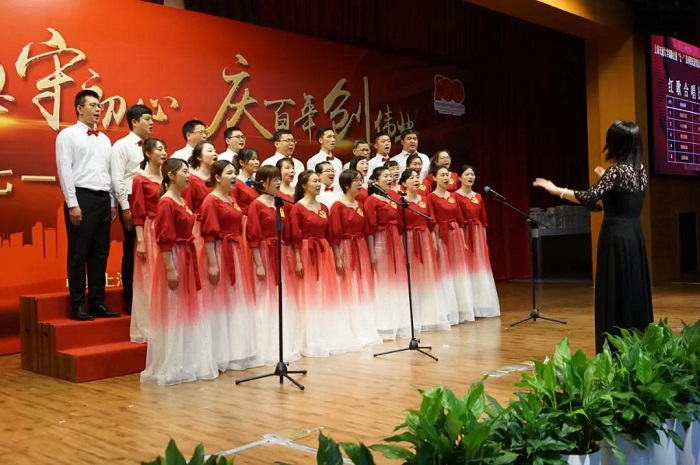 百年奋斗路,启航新征程。退休老同志创作的《风》,新老结合,共同演绎。中国共产党的诞生,掀起了革命的飓风,改革的春风吹遍神州大地,没有共产党就没有新中国,只有社会主义才能救中国,这是中华民族发出的最后吼声。红歌赛在《没有共产党就没有新中国》的旋律中拉开帷幕,《我的祖国》《我和我的祖国》《不忘初心》《爱我中华》《解放区的天》,一首首充满激情的红歌,带领大家仿佛回到了百年之前,从石库门一大会址的初心誓言到南湖碧波上的奋勇前进,共产党人的坚定信念历久弥新。