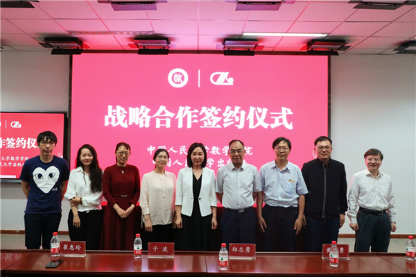 2021年6月1日下午,中国人民大学出版社与中国人民大学数学学院战略合作签约仪式在数学学院二层报告厅举行。中国人民大学出版社副总编辑于波,经济分社社长崔惠玲及相关编辑出席了本次签约仪式,数学学院院长郑志勇、副院长柯媛元、党委副书记黄志勇及数学学院师生代表参会。柯媛元主持签约仪式。