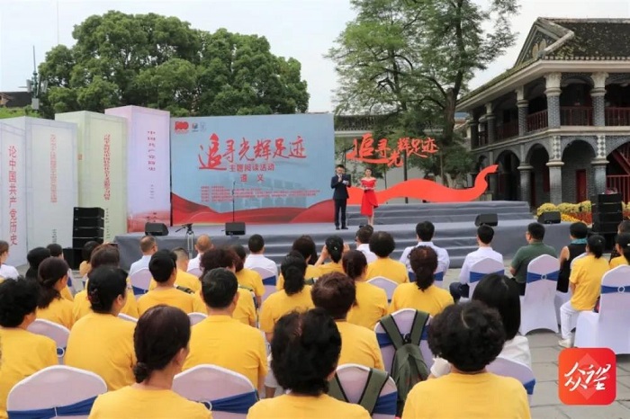 追寻光辉足迹,播撒红色书香。6月21日,由中宣部出版局指导,中共贵州省委宣传部、中共遵义市委、遵义市人民政府主办的“追寻光辉足迹”主题阅读活动(遵义站)在遵义会议会址举行。与此同时,由中国全民阅读媒体联盟、中国新闻出版传媒集团主办,中国新闻出版广电报社等单位承办的“书香中国万里行”走基层巡回采访活动在遵义启动2021年第二站。本次“书香中国万里行”走基层巡回采访活动继续采取“走着采,坐着谈”的方式,全方位聚焦遵义的全民阅读,重点采访报道遵义主题阅读活动及书香社会建设情况,从多层面、多视角剖析、聚焦推进全民阅读、红色阅读的举措,总结推广先进经验。