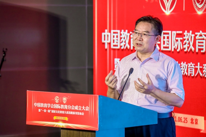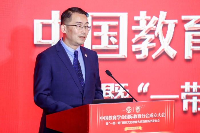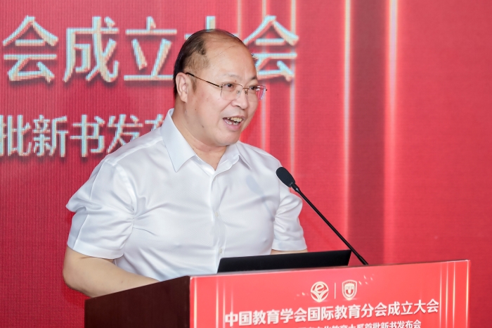 中国教育学会秘书长杨银付首先代表中国教育学会对国际教育分会的成立表示祝贺。他指出,国际教育分会的成立是众望所归,也恰逢其时。接着,杨银付从组织开展学术研究、研制专业评价标准、促进教育交流合作、开展师资培训、讲好中国教育故事等方面分享了关于分会定位和发展思路的构想。随后,他用“四个坚持、四个提升”对分会提出了希望和要求:第一,坚持政治建会,提升引领力;第二,坚持服务立会,提升贡献力;第三,坚持学术兴会,提升竞争力;第四,坚持科学治会,提升保障力。最后,杨银付表示,希望大家在王定华理事长的带领下,不忘初心,牢记使命,精诚团结,为我国国际教育发展做出卓越的贡献。