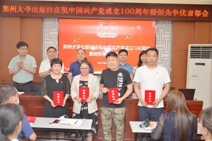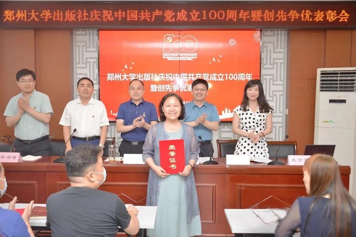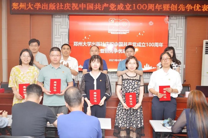 6月28日,郑州大学出版社举行庆祝中国共产党成立100周年暨创先争优表彰大会。郑州大学出版社党总支书记、董事长韩晔,社长、总编辑孙保营,副总编辑崔青峰、吴昕,副社长李海涛出席会议。全社党员、入党积极分子等60多人参加会议。会议由孙保营主持。 大会在庄严的国歌声中开幕。崔青峰同志宣读中共郑州大学出版社总支部委员会《关于表彰优秀共产党员、优秀党务工作者和先进党支部的决定》,刘永静等9名同志被评为优秀共产党员,闫习等4名同志被评为优秀党务工作者,出版社第一党支部被评为先进党支部。随后,社领导为获奖的个人和集体颁发了荣誉证书。